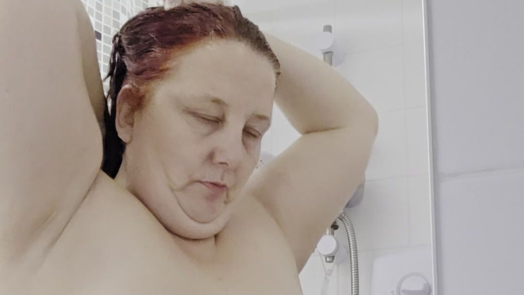 Watch as I lather myself up, down my breasts, body, legs, in-between them and my feet, with my bath scrunchie.